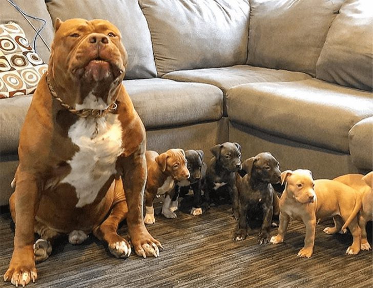 It looks like this guy also hit the gym and is as buffed as chef Andre Rush from a few items back. His owner must hope that the feed stayed in this daddy’s genes and passed down to the pups on his left. There are calls to end Pitbull breeding due to their links to dog fighting and the many incidences of attacks on people.