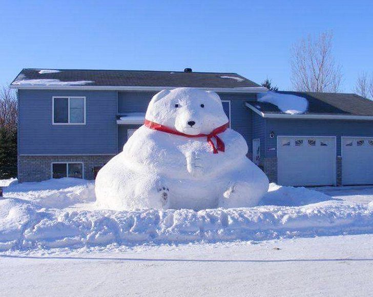 Part of this is building snowmen, a tradition whose origin is difficult to pinpoint, although there are many stories about this. This is more of a snow bear and a giant one at that. It must have taken hours, a ladder, and plenty of snow. A good way to spend a snow day then.