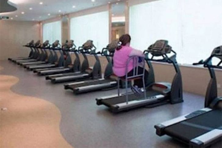 In the gym’s hall of fame for creativity, one woman just took the top spot with her revolutionary workout method. She’s brought a chair to the treadmill, sitting comfortably while her feet paddle away beneath her. This relaxed determination might just redefine what we consider “cardio.” She’s hoping to pedal her way to fitness from the comfort of her seat!