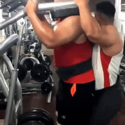 There are so many gym machines, so which one should you choose? This gymgoer in red decides to rewrite the rules of the shoulder press machine. Facing the machine, a position that defies conventional workout wisdom, he enlists the help of his gym buddy, who stands behind him, eagerly assisting in this unconventional lift.