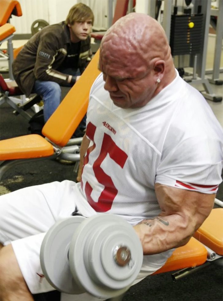 This mighty muscular, bald man seems to take on the Herculean task of lifting a dumbbell of epic proportions. His muscles bulge as he channels his inner strength, and his veins pop so much that he now resembles The Thing of the “Fantastic Four” film. But the spectacle aside, let’s not forget safety first!