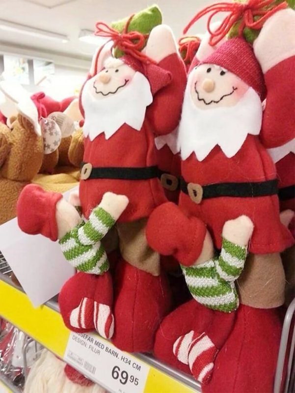 Sometimes, holiday decorations aim for wholesome and end up somewhere… less so. These Santa dolls appear to have gotten tangled in a bizarre design choice that gives “holiday cheer” a whole new, slightly questionable meaning. From a distance, they might look like cheerful, innocent ornaments, but closer inspection reveals an awkward arrangement that’ll leave one doing a double take.