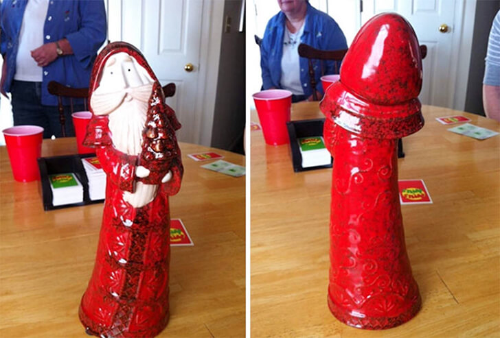 At first glance, this red ceramic Santa seems like an innocent holiday decoration, but turn him around, and the back tells an entirely different story. Somewhere between the sculptor’s artistic ambitions and the glaze, Santa’s wholesome image took an unintentional detour.