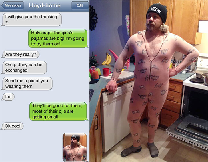 Nothing says festive family bonding like dad deciding to try on the kids’ new onesie and absolutely owning it. With a confident pose and a questionable amount of zipper visibility, he’s making a bold case for adult-sized matching PJs next year. The cat print and beanie combo is iconic. The kitchen may never recover from the sheer style on display.