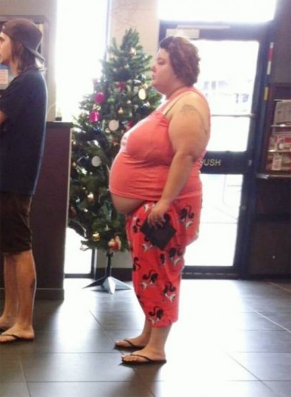 With a Christmas tree in the background, it’s almost as if this outfit was meant to blend in with the decorations. Whether this was a planned look or just a quick errand in full festive glory, you’ve got to admire the confidence. After all, nothing says “I’m ready for the holidays” like unapologetically wearing flamingo PJs in public.