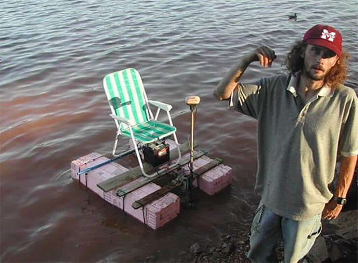 Es ist echt beeindruckend, wie dieser Mann mit einfachsten Mitteln ein schwimmendes Gefährt gebaut hat. Ein Brett, ein improvisierter Stuhl und ein kleiner Motor – mehr braucht es nicht für pures Glück auf dem Wasser und entspannte Segel- und Angeltrips. Dieses schlichte Bötchen mag zwar weder luxuriös noch schnell sein, aber es vermittelt trotzdem Spaß und Lebensfreude.